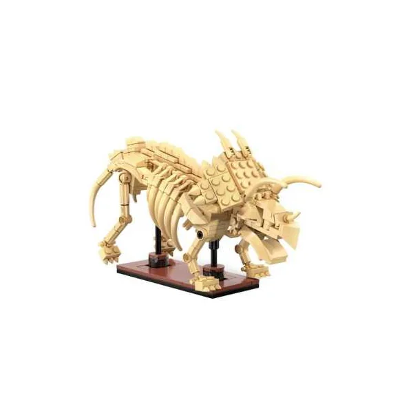 Ce squelette de Tricératops de 272 pièces brille dans le noir et dispose d’articulations mobiles pour des poses flexibles de sorte que la position du dinosaure peut être modifiée et déplacée à volonté. Il peut être combiné avec le Stegosaurus (CDC59012W) et le vélociraptor (CDC59014W) pour construire un tyrannosaurus rex plus grand.