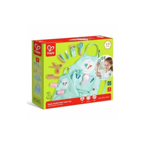 Découvrez le kit du petit coiffeur de Hape, un coffret renfermant toute la panoplie nécessaire pour jouer à se coiffer ou à coiffer ses poupées dès 3 ans.