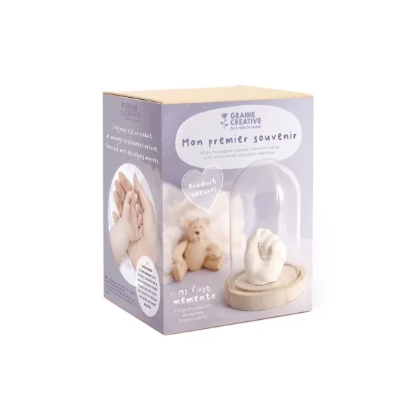 Découvrez le Kit moulage mon premier souvenir de Graine créative, un cadeau de naissance original pour reproduire facilement la main de son bébé.