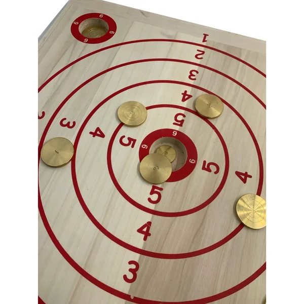 Chaque joueur lance 2×12 palets à tour de rôle. Celui qui comptabilise le plus de points gagne la partie.