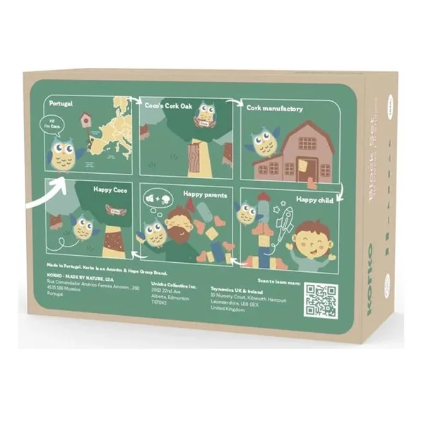 Nos jouets et leurs emballages sont fabriqués au Portugal. Nous réduisons ainsi la distance lors des transports et privilégions une production en Europe. L’écorce du chêne-liège fixe de grandes quantités de CO². Nous utilisons cette écorce pour la fabrication de nos jouets. Grâce aux propriétés naturelles du liège, nos jouets sont écoresponsables et leur production est neutre pour le climat. Matière : Bois FAQ