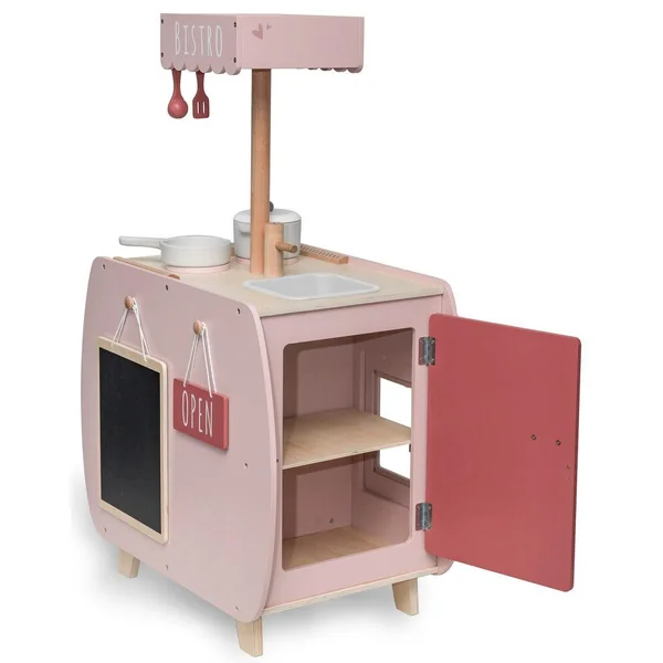 Créez des repas raffinés et servez-les dans votre propre bistrot fabuleux. Les petits chefs ont tout l’espace dont ils ont besoin pour créer des plats de première classe dans leur îlot de cuisine. Tous les accessoires tels qu’une marmite, une poêle, une toque, une spatule et une cuillère sont inclus.