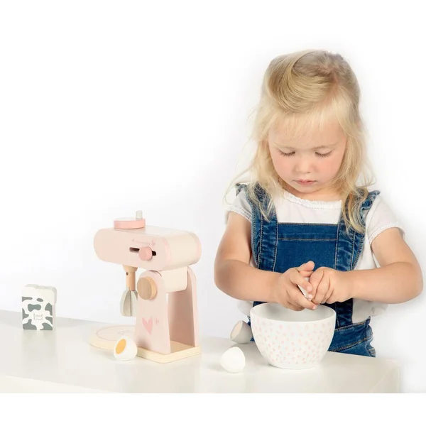 Votre tout-petit va maintenant faire ses propres biscuits ou gâteaux avec ce robot de cuisine super chouette de Label Label. Ce robot de cuisine avec accessoires est fait de bois de qualité certifié FSC et porte des couleurs et des symboles appliqués à l’aide de peinture à base d’eau pour les enfants.