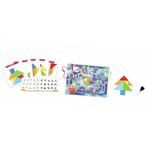 Le Space Maze & Tangram Board est un jouet deux-en-un conçu pour grandir avec votre enfant. D’un côté, un labyrinthe spatial magnétique renforce la motricité fine et la coordination œil-main, tandis que de l’autre, un puzzle tangram progressif et un tableau blanc intégré permettent une créativité sans limites.