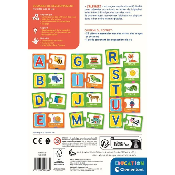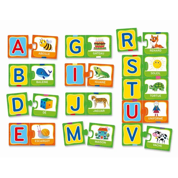 Avec 52 cartes illustrées, votre enfant apprendra à associer les lettres de l’alphabet aux mots avec les initiales correspondantes.