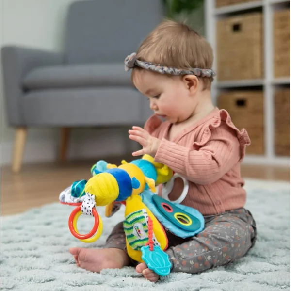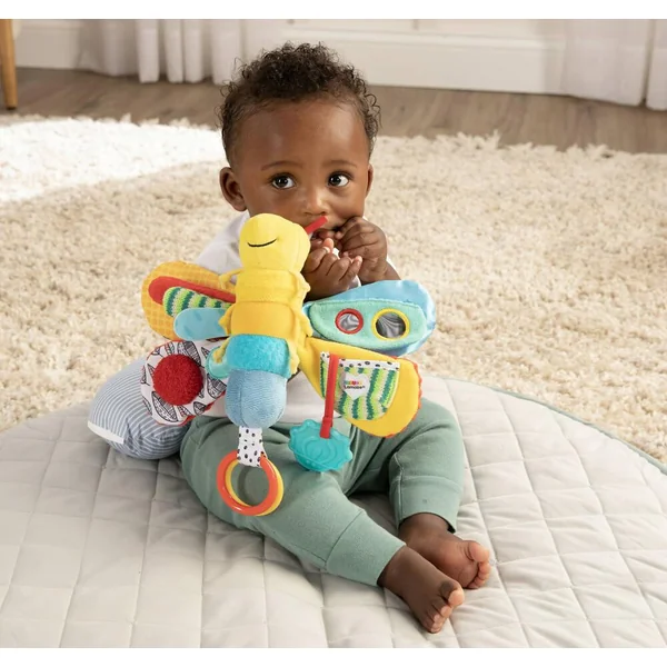 Freddie offre à votre petit enfant toutes les activités nécessaires à son éveil : il froisse ses ailes, fait tinter le grelot, se regarde dans le miroir, mordille l’anneau à dentition. Les ailes de Freddie la Luciole cachent un miroir, un anneau de dentition, des bruits rigolos… Avec son attache Clip’n Go pour accompagner Bébé partout.
