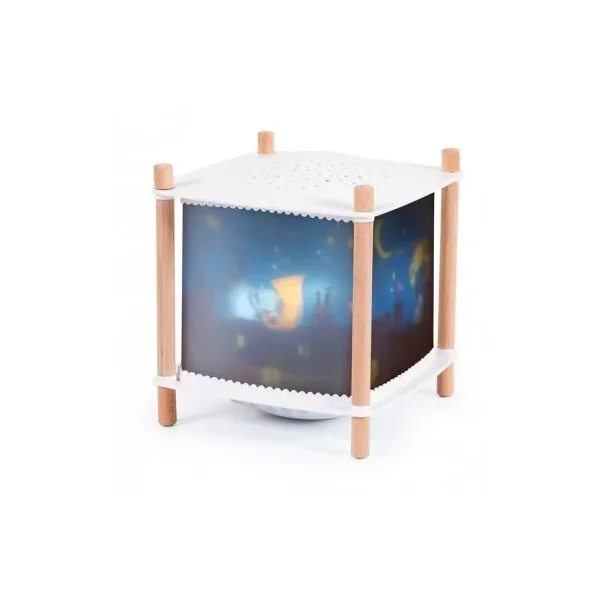 En fonction veilleuse apaisante: lorsque vous l’allumez, un film tourne devant les yeux apaisés et ébahis de votre enfant. En fonction projecteur d’étoiles: une fois activée, cette fonction permet à la lanterne de projeter des étoiles au plafond comme si votre chambre se transformait en ciel étoilé. En fonction veilleuse musicale: 4 berceuses sont préenregistrées et vous avez la possibilité de diffuser d’autres histoires ou musiques de votre choix grâce à la connexion sans fil. En fonction détecteur de pleurs: la veilleuse se rallume automatiquement quand la fonction est activée.