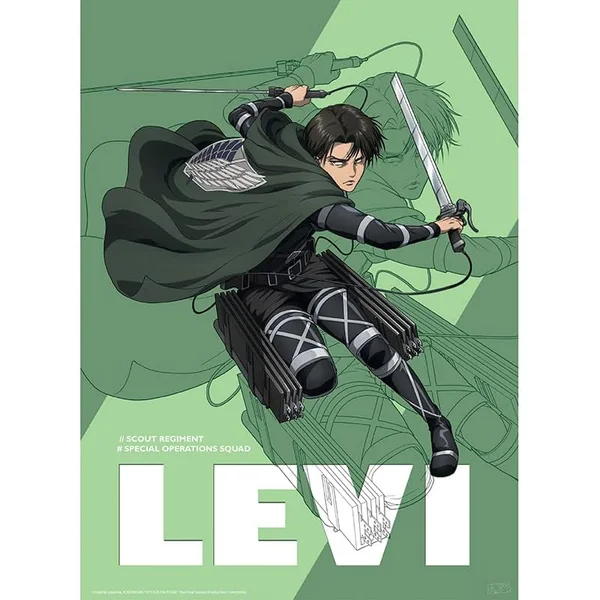 Rejoignez le combat avec le caporal chef Livai du bataillon d’exploration! Ce poster fait référence à l’apparence de Livai Ackerman lors de la saison 4 de l’Attaque des Titans !
