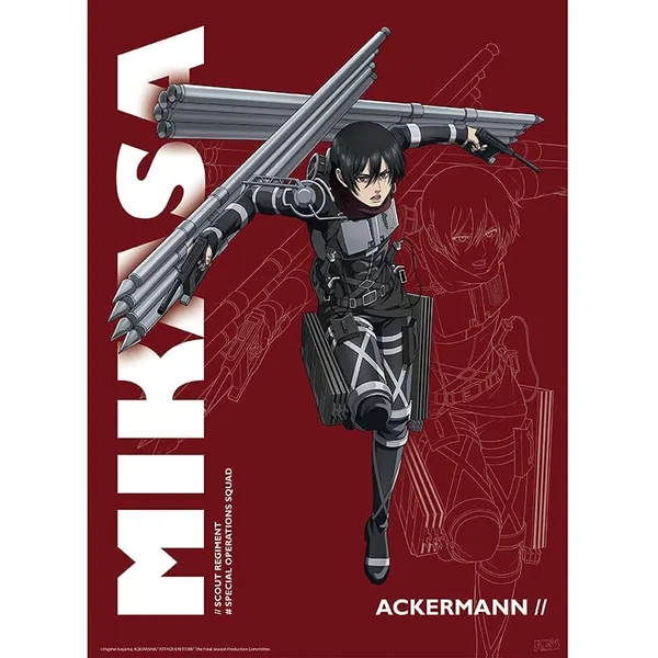 Rejoignez le combat avec Mikasa du bataillon d’exploration! Ce poster fait référence à l’apparence de Mikasa Ackerman lors de la saison 4 de l’Attaque des Titans !