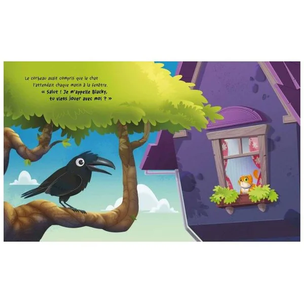 Chaque matin, à la fenêtre, le chat admirait les vols fantastiques du corbeau. En le regardant voler dans ses élégantes plumes noires, il rêvait d’être libre. Parce que, malheureusement, il n’a jamais pu sortir de ces quatre murs. La maîtresse de maison était une enseignante, aussi sympathique qu’une plante carnivore vénéneuse. Elle passait tout son temps à corriger ses devoirs avec un stylo rouge, et ne voulait être dérangée par personne. Le corbeau parviendra-t-il à élaborer un plan pour libérer le chat, qui en a assez d’être enfermé en permanence ?