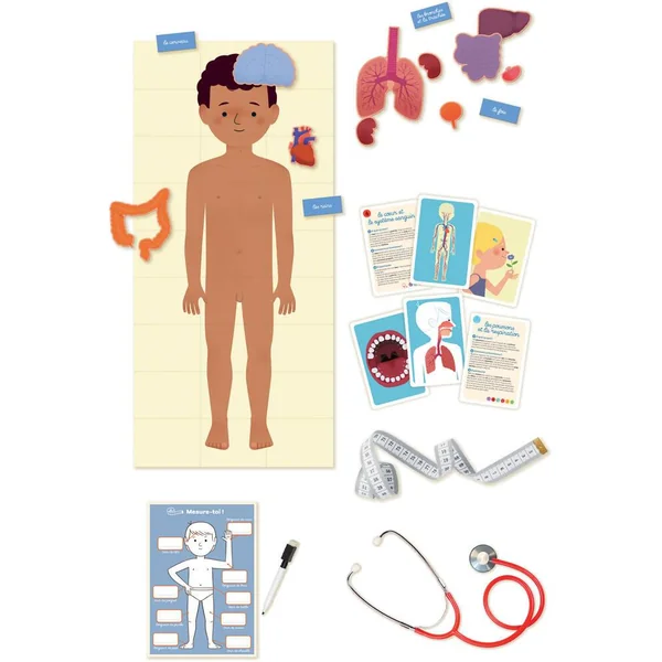 Avec les coffrets Au Rythme de l’enfant Nathan propose une offre éducative différenciante qui s’adapte aux besoins des enfants pour qu’ils débutent avec l’apprentissage pas à pas. Ces coffrets sont composés de différents outils pour les aider à appréhender les différentes thématiques avec un autre angle que celui habituellement utilisé à l’école. Un guide est inclus à destination des parents et de la famille pour les accompagner dans les apprentissages. Le coffret d’activités sur la thématique du Corps humain accompagne pas à pas l’enfant dans la découverte du corps humain. L’enfant joue à se mesurer avec le mètre mesureur, complète la fiche de santé effaçable et écoute son cœur avec un vrai stéthoscope. Grâce au poster à taille réelle, il place les organes et découvre comment fonctionne son propre corps. Un jeu qui permet aux plus jeunes d’intégrer leur schéma corporel et de répondre aux questions des plus grands sur le fonctionnement du corps humain. Au total c’est plus de 20 activités à partager en famille.