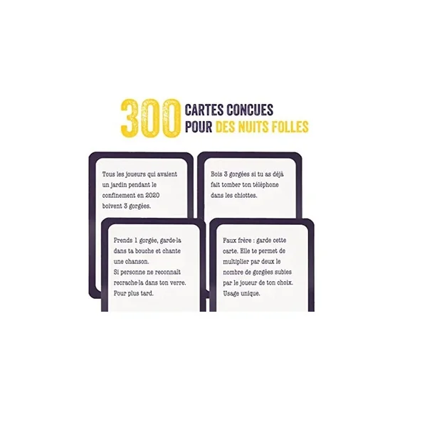 Jeu à boire de 300 cartes variées et toujours très drôles, où les joueurs devront par exemple :