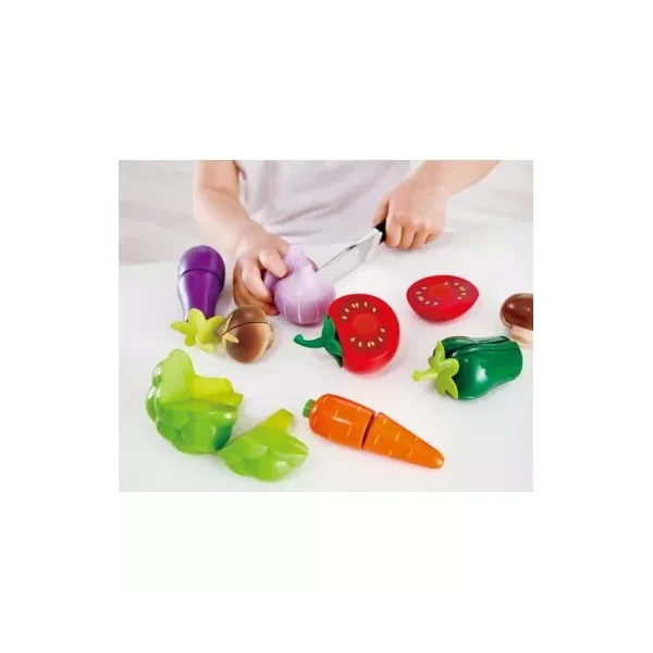 Un jouet en bois et en plastique indispensable pour jouer autour de la cuisine et apprendre à votre enfant les différents légumes et leurs couleurs.