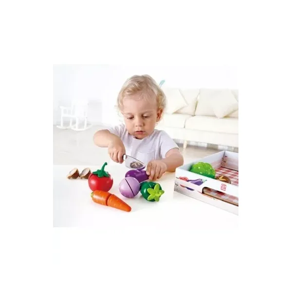 Découvrez les légumes du jardin à découper de Hape, des légumes frais et sains pour s’amuser à jouer autour de la cuisine à partir de 3 ans. 7 légumes et un couteau pour les futurs chef.