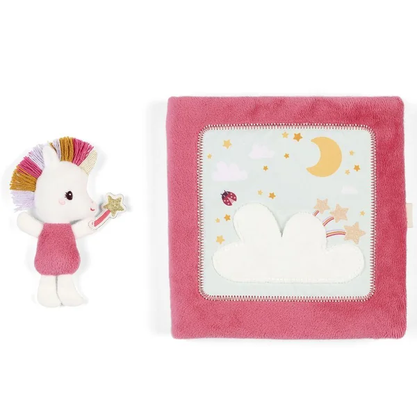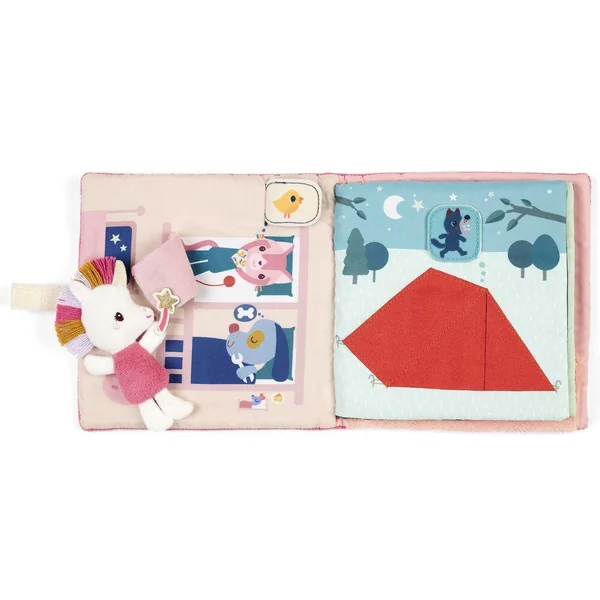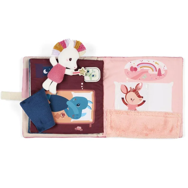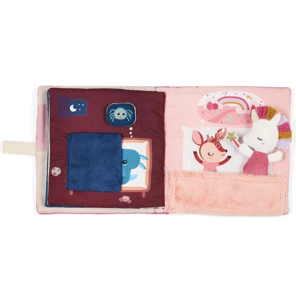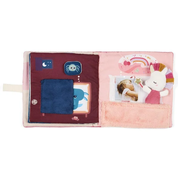 Un livre d’activités en tissu tout doux, où Lena la licorne veille sur le sommeil de ses amis. Elle chasse les cauchemars et les transforme en rêves tendres. Idéal pour partager un moment complice entre parent et enfant avant le coucher.