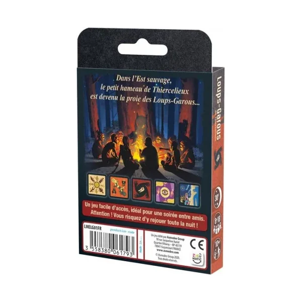 Ce jeu contient 24 cartes représentant les différents rôles : voyante, sorcière, voire les terribles loups-garous ! et la règle du jeu.