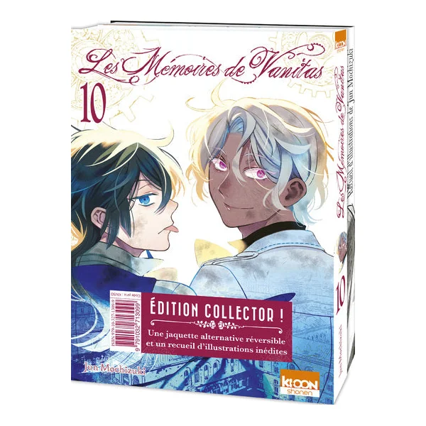 Ce Tome 10 Collector Les Mémoires de Vanitas comprend le tome 10 avec jaquette alternative réversible et un recueil finition cartonnée de 64 pages d’illustrations, strips et croquis 100% inédits.
