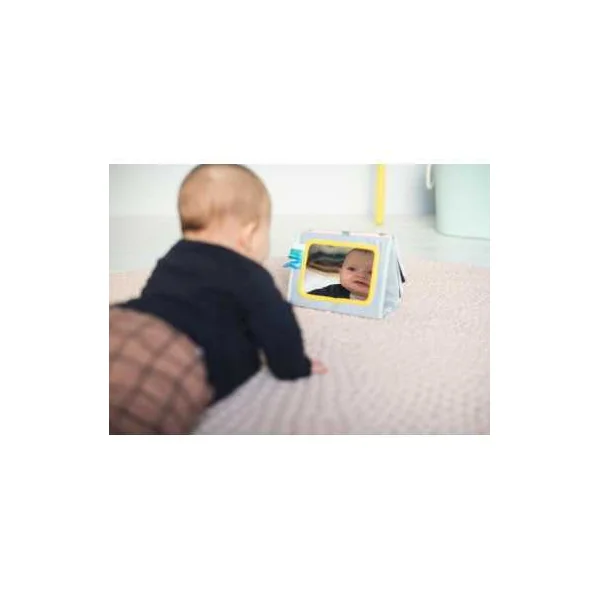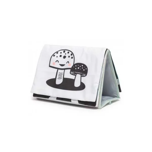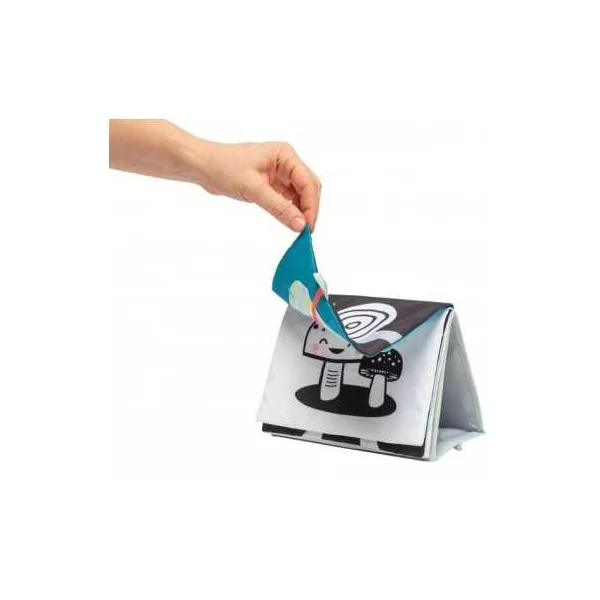 Ce livre unique, en forme de chevalet, présente des textures variées et des pages bruissantes pour stimuler le toucher et l’ouïe. D’un côté, des illustrations en noir et blanc captiveront l’attention des tout-petits, tandis que de l’autre, des illustrations en couleurs offriront un contraste vibrant. Le jouet possède également un miroir et un anneau de dentition, pour encore plus de divertissement et de découverte sensorielle.