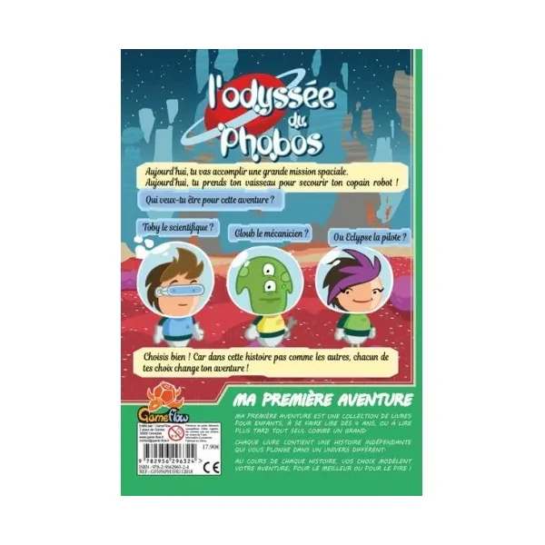 Découvrez le livre Ma première aventure l’odyssée du phobos, un livre jeu de Roméo Hennion, illustré par Arnaud Boutle, édité par Gameflow. L’odyssée du Phobos est le troisième titre de la collection Ma première aventure. Choisis ton personnage et entre dans une histoire pas comme les autres, une histoire où chacun de tes choix change ton aventure.