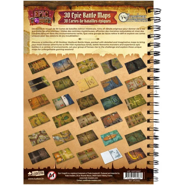 Découvrez le recueil de 30 Cartes de batailles édition Médiévale, riche en détails originaux pour donner vie à vos aventures les plus intenses ! Visitez des contrées mystérieuses, affrontez des monstres redoutables et vivez des combats épiques dans des environnements variés. Que votre groupe de héros relève le défi et explore ces cartes uniques pour des sessions de jeu inoubliables ! Un stylo effaçable peut être utilisé sur ce livre plateau pendant vos parties de JDR.