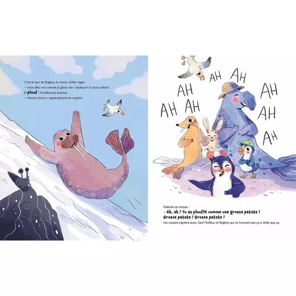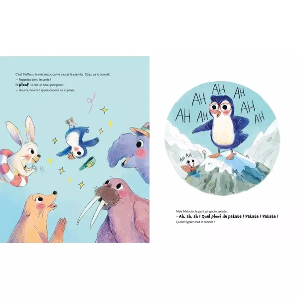 Un concours de plongeon s’organise sur la banquise. Tous les animaux sautent les uns après les autres, en faisant de magnifiques pirouettes ! Mais Malouin le pingouin n’arrête pas de se moquer et de les appeler « vieille patate ». Ça suffit, maintenant ! FAQ