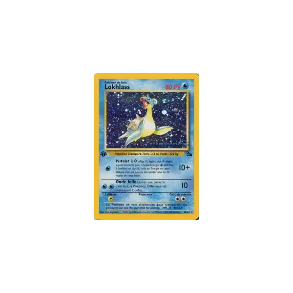 Découvrez Lokhlass (fo010), une carte Pokémon de l’extension Fossile, provenant du bloc Wizards. Idéale pour compléter votre collection, cette carte Holo Rare plaira autant aux collectionneurs qu’aux joueurs.