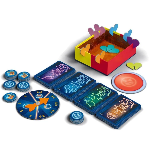 Il y a quatre types de cartes pour vous aider : les lectures à voix haute (à vous d’y mettre l’intonation qui sera la plus drôle), les défis de groupes (qui vous donneront la possibilité de faire créer des situations absurdement drôles), les duels (choisissez un autre joueur et vous verrez qui rira le premier) et les cartes Briser la glace (tournez la flèche et faites preuve de créativité pour trouver des situations marrantes) ! Qui parviendra à ne pas rire pour éviter de recevoir des cartons ? Qui fera le plus rire les autres joueurs ? À vous de résister à ce jeu hilarant tout en faisant rire les autres ! LOL : Qui rit, sort ! est un jeu accessible et familial jouable dès 14 ans.