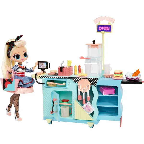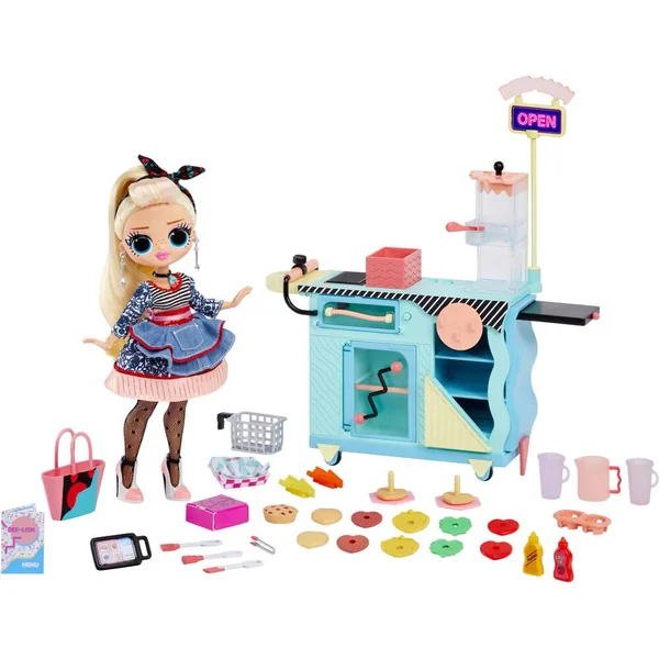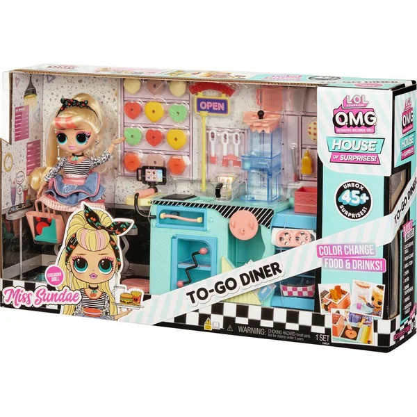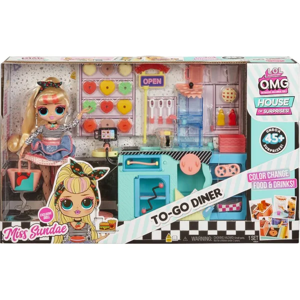 Avec le OMG I AM invite tous tes amis à venir manger un petit bout ! Le playset inclut une poupée mannequin OMG exclusive ainsi que des accessoires qui changent de couleur ! Wow regarde les frites ont changé de couleurs, elles sont cuites ! Contient 45 surprises à découvrir dont 1 poupée OMG.