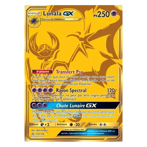 Découvrez Lunala (upr172), une carte Pokémon de l’extension Ultra-Prisme, provenant du bloc Soleil & Lune. Idéale pour compléter votre collection, cette carte Secret Rare plaira autant aux collectionneurs qu’aux joueurs.