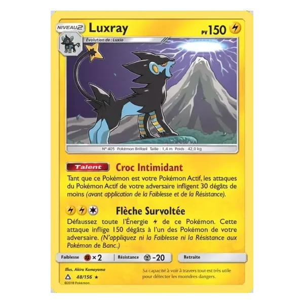 Découvrez Luxray (upr048), une carte Pokémon de l’extension Ultra-Prisme, provenant du bloc Soleil & Lune. Idéale pour compléter votre collection, cette carte Holo Rare plaira autant aux collectionneurs qu’aux joueurs.