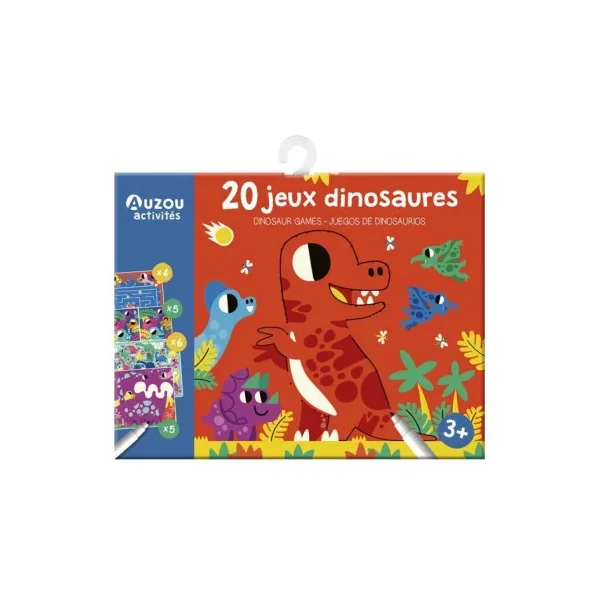 Découvrez Ma pochette de 20 jeux dinosaures de Auzou, une pochette renfermant des fiches plastifiées et un feutre effaçable pour divertir les enfants dès 3 ans. Une jolie pochette de jeux sur le thème des dinosaures!