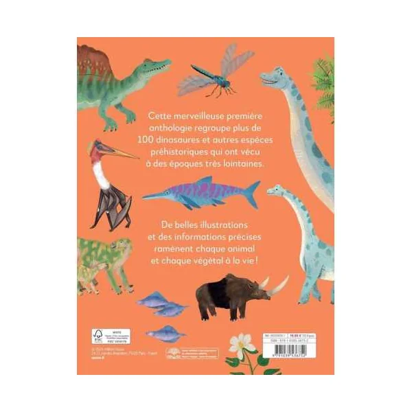 Ce superbe livre entraîne l’enfant dans un voyage depuis l’apparition de la vie sur Terre, et l’émerveille en lui faisant découvrir les dinosaures et autres vies préhistoriques. Cette merveilleuse première anthologie regroupe plus de 100 dinosaures et autres espèces préhistoriques.