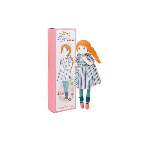 Découvrez la poupée Mademoiselle Colette de la collection Les parisiennes de Moulin Roty, une adorable poupée chiffon toute apprêtée à la pointe de la mode. Une grande poupée dans une magnifique boite cadeau.