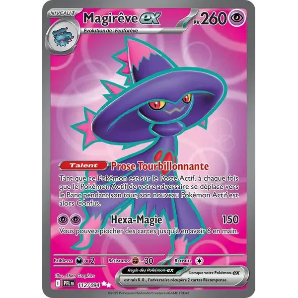 Découvrez Magirêve (pfl112), une carte Pokémon de l’extension Flammes Fantasmagoriques, provenant du bloc Méga-Évolution. Idéale pour compléter votre collection, cette carte Ultra Rare plaira autant aux collectionneurs qu’aux joueurs.