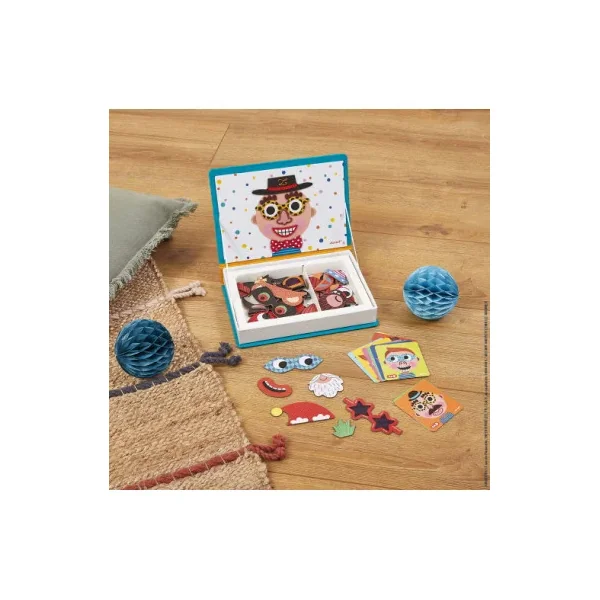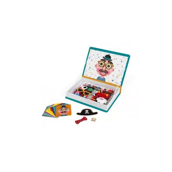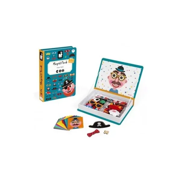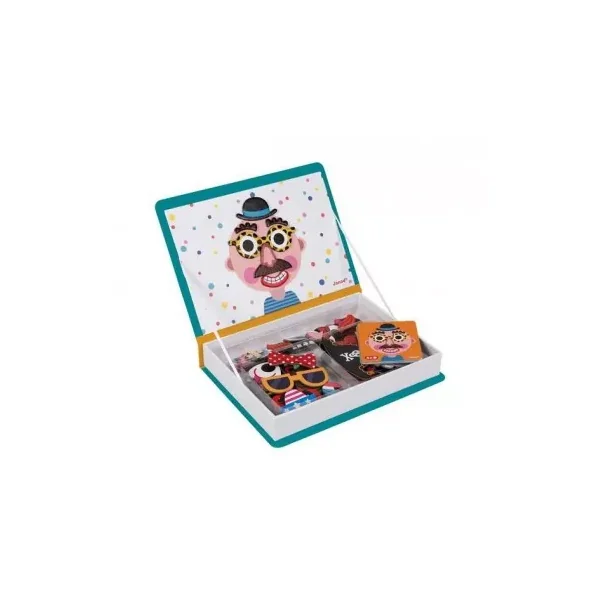 Magnetibook Crazy face, c’est un jeu magnétique de Janod se présentant dans une boite à ouvrir avec un couvercle magnétique pour reproduire des visages rigolos avec des magnets. Un cadeau pour les enfants de 3 à 8 ans.