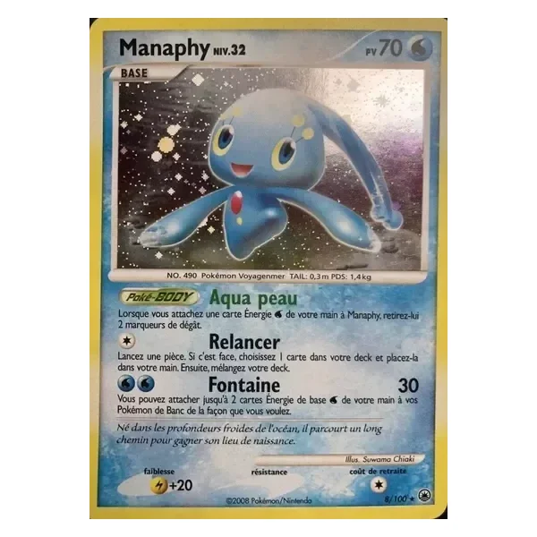 Découvrez Manaphy (md008), une carte Pokémon de l’extension Aube Majestueuse, provenant du bloc Diamant & Perle. Idéale pour compléter votre collection, cette carte Holo Rare plaira autant aux collectionneurs qu’aux joueurs.