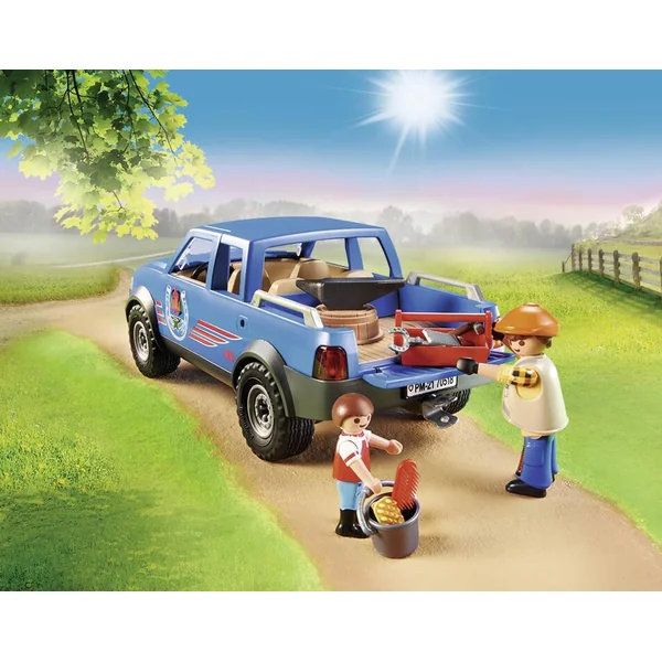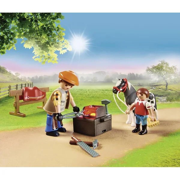 Et si on partait en balade ? Ce maréchal-ferrant possède une forge mobile dans son véhicule. Elle lui permet de confectionner les fers parfaits pour son cheval. Il apprend à son fils comment se servir de ces outils. Contient deux personnages. Dimensions du véhicule : 26 x 11 x 9,5 cm (LxPxH).