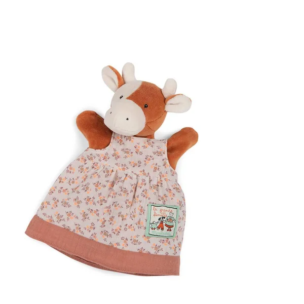Ainsi font… pour amuser bébé, Charlotte la vache s’est transformée en marionnette pour inventer de belles histoires.
