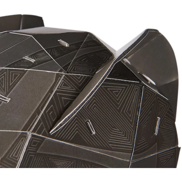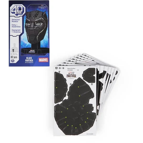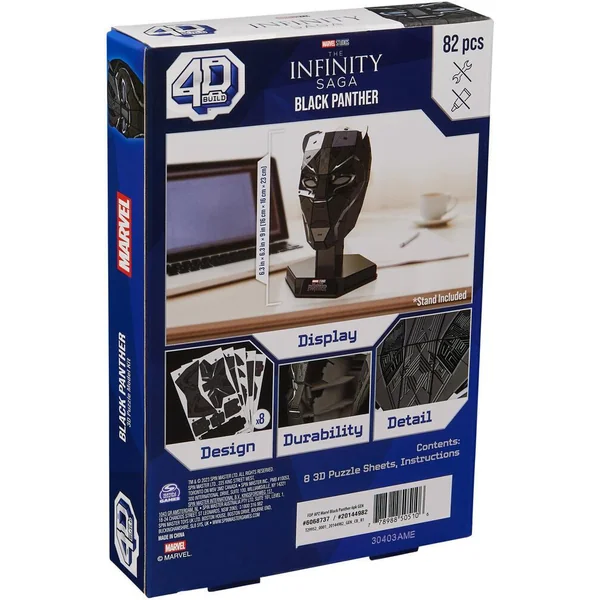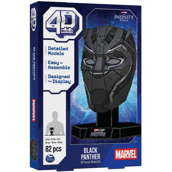 Une réplique ultra-réaliste à construire soi-même – Un système de construction simple avec un haut niveau de détails graphiques permettant de jouer ou d’exposer ses héros préférés – Ce modèle Masque Black Panther de l’univers Marvel est composé de 82 pièces, pour une durée de montage d’environ 1 à 2 heures – Dimensions du modèle monté : Hauteur 23 x Longeur 16 x Profondeur 16 cm – 8 planches et 1 notice de montage fournies. Socle d’exposition inclus.