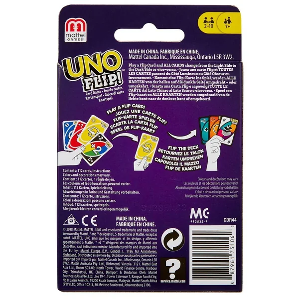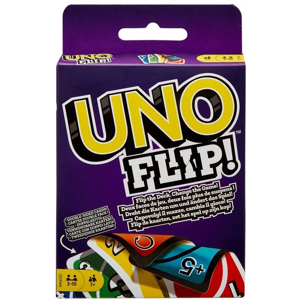 Explorez UNO FLIP : une version délirante du jeu classique avec des cartes recto verso et cartes Action . La carte Retourner change tout en révélant de nouveaux chiffres et couleurs au verso.
