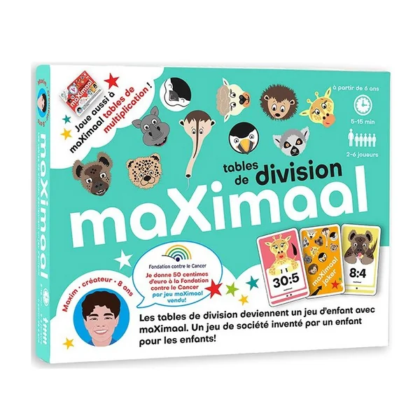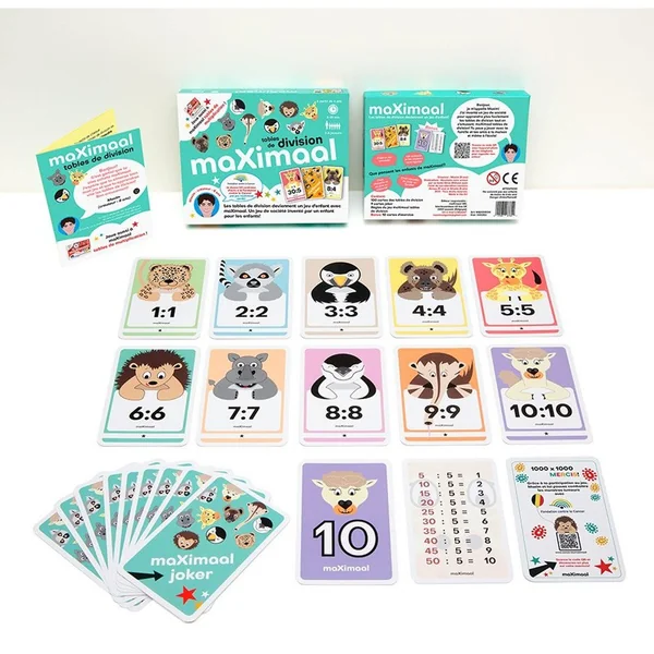 MaXimaal Tables de Division est un jeu de cartes pour apprendre et pratiquer les tables de Division de manière ludique. L’idée du jeu vient d’un enfant de 8 ans qui voulait rendre la pratique des tables de partage plus amusante.