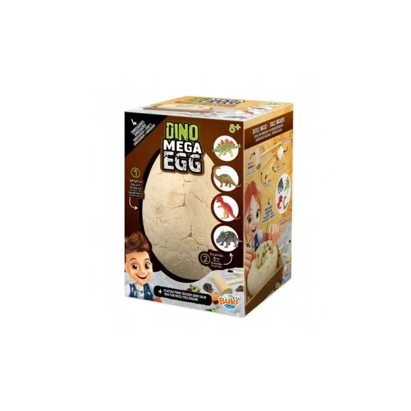 Découvrez le mega oeuf dino à déterrer de Buki, un œuf géant de 17 cm en plâtre pour déterrer 4 puzzles de dinosaures avec un Tyrannosaure, un Diplodocus, un Stégosaure et un Styracosaure.
