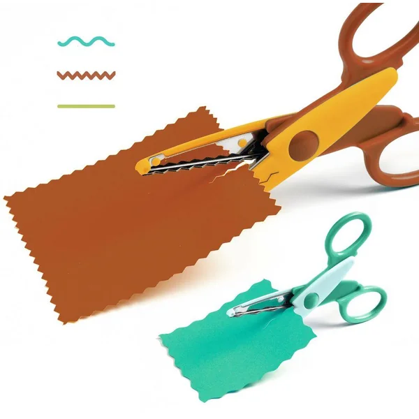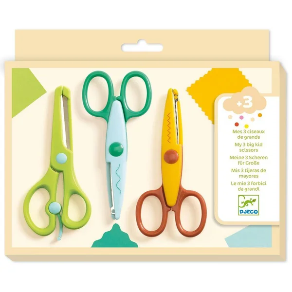 3 paires de ciseaux pour 3 découpes différentes : 1 découpe toute droite, 1 découpe ondulée et 1 découpe crantée. Idéal pour travailler sa motricité fine, développer son imagination, et varier ses créations !