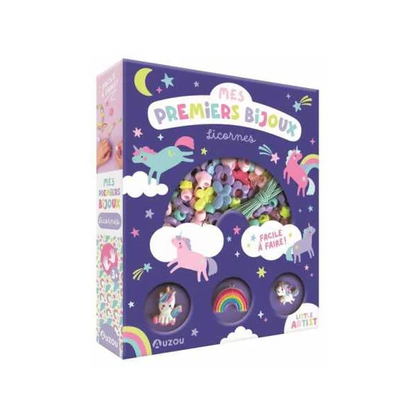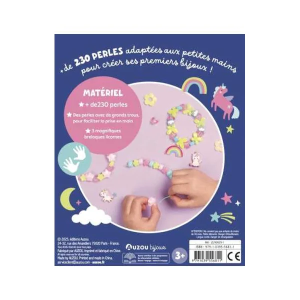 Découvrez Mes premiers bijoux licornes de la collection « Little artist » de Auzou, un magnifique coffret de perles pour les enfants à partir de 3 ans sur le thème des licornes.