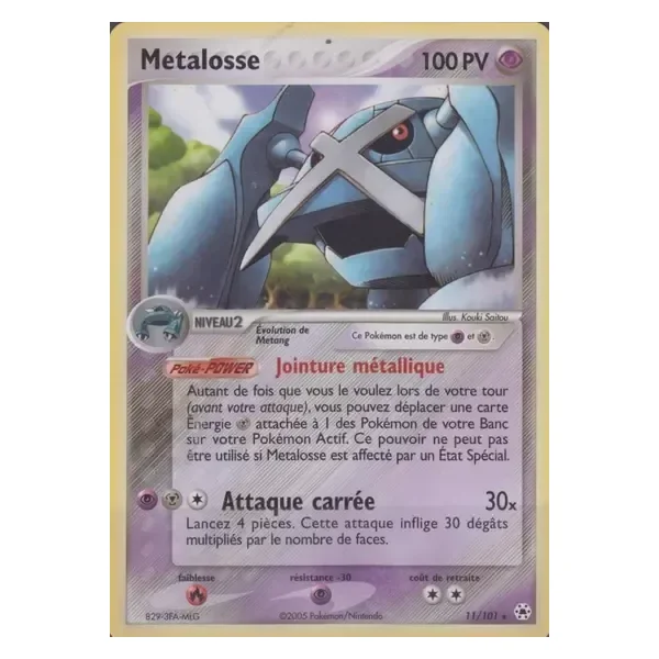 Découvrez Metalosse (hl011), une carte Pokémon de l’extension Légendes Oubliées, provenant du bloc Ex. Idéale pour compléter votre collection, cette carte Holo Rare plaira autant aux collectionneurs qu’aux joueurs.