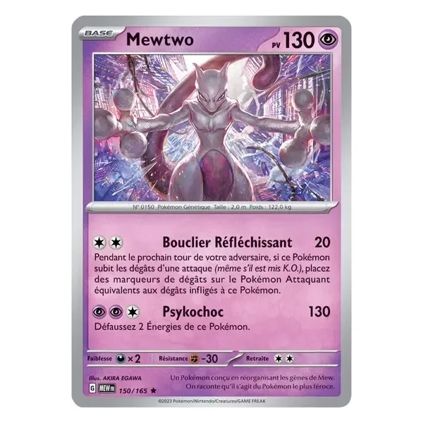 Découvrez Mewtwo (mew150), une carte Pokémon de l’extension 151, provenant du bloc Écarlate & Violet. Idéale pour compléter votre collection, cette carte Rare plaira autant aux collectionneurs qu’aux joueurs.