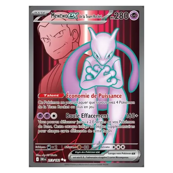Découvrez Mewtwo ex de la Team Rocket (dri213), une carte Pokémon de l’extension Rivalités Destinées, provenant du bloc Écarlate & Violet. Idéale pour compléter votre collection, cette carte Ultra Rare plaira autant aux collectionneurs qu’aux joueurs.