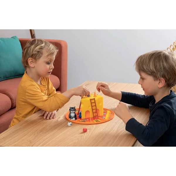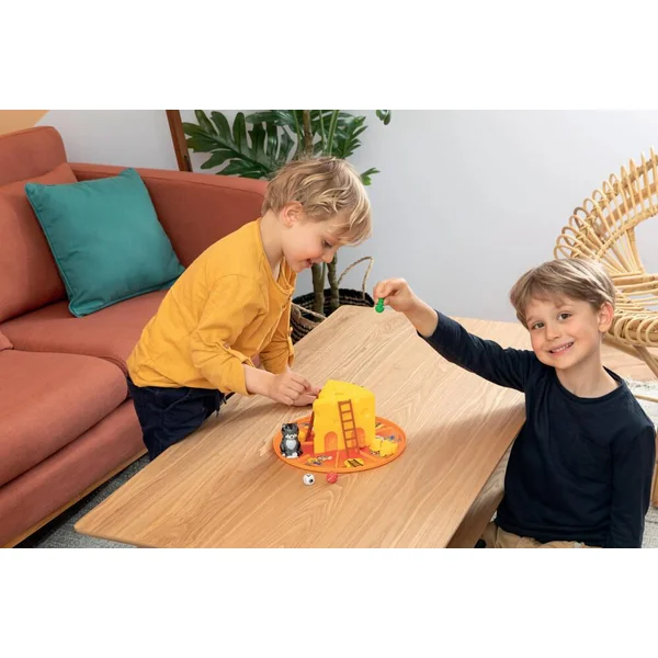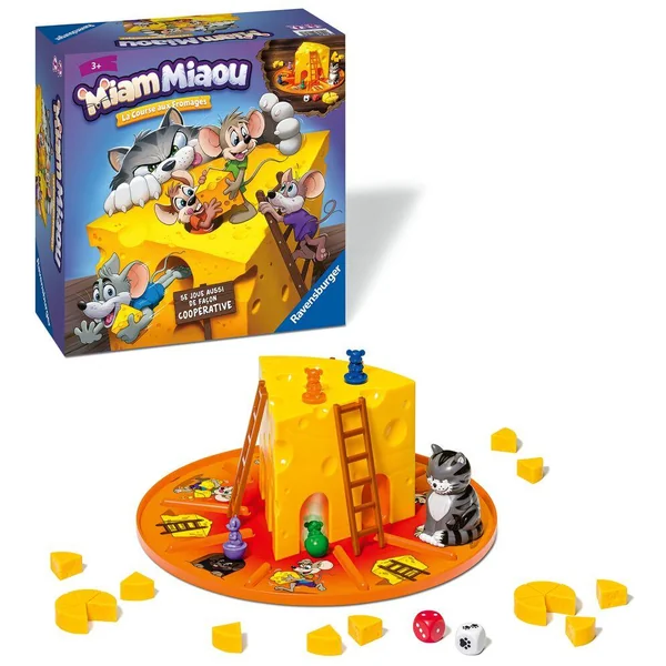 Quatre petites souris tentent par tous les moyens de voler des portions de fromage et s’amusent à faire du toboggan tout autour. Il faut tout de même faire attention, car le chat rôde dans les parages et risque bien de les effrayer et de leur faire perdre leurs butins. Qui remportera le plus de fromages ?