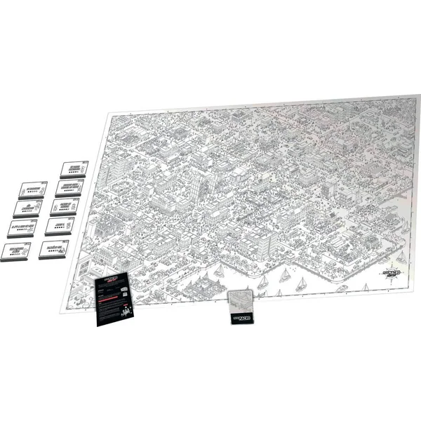 La boîte de jeu Micro macro Crime City fait partie des jeux et jouets 8 ans. Le but du jeu est d’aider la police à résoudre 16 affaires criminelles qui ont eu lieu à Crime City. La boîte contient un poster de la ville, des cartes et une loupe. Il faut répondre aux questions présentes sur les cartes, observer tous les détails de la ville et chaque trace à la loupe. Les joueurs peuvent créer un scénario original à chaque partie. Une boîte à emporter avec les autres jeux de voyage.