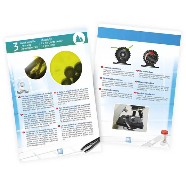 Avec trois niveaux de zoom, x 100, x 250 et x 1000 hd, les jeunes scientifiques peuvent découvrir des détails fascinants et approfondir leur compréhension du monde microscopique. Le microscope est livré avec une variété d’accessoires : lamelles, pince, fioles, mélangeur, étiquettes, boîte de pétri et micro trancheuse, permettant une multitude d’expériences enrichissantes.